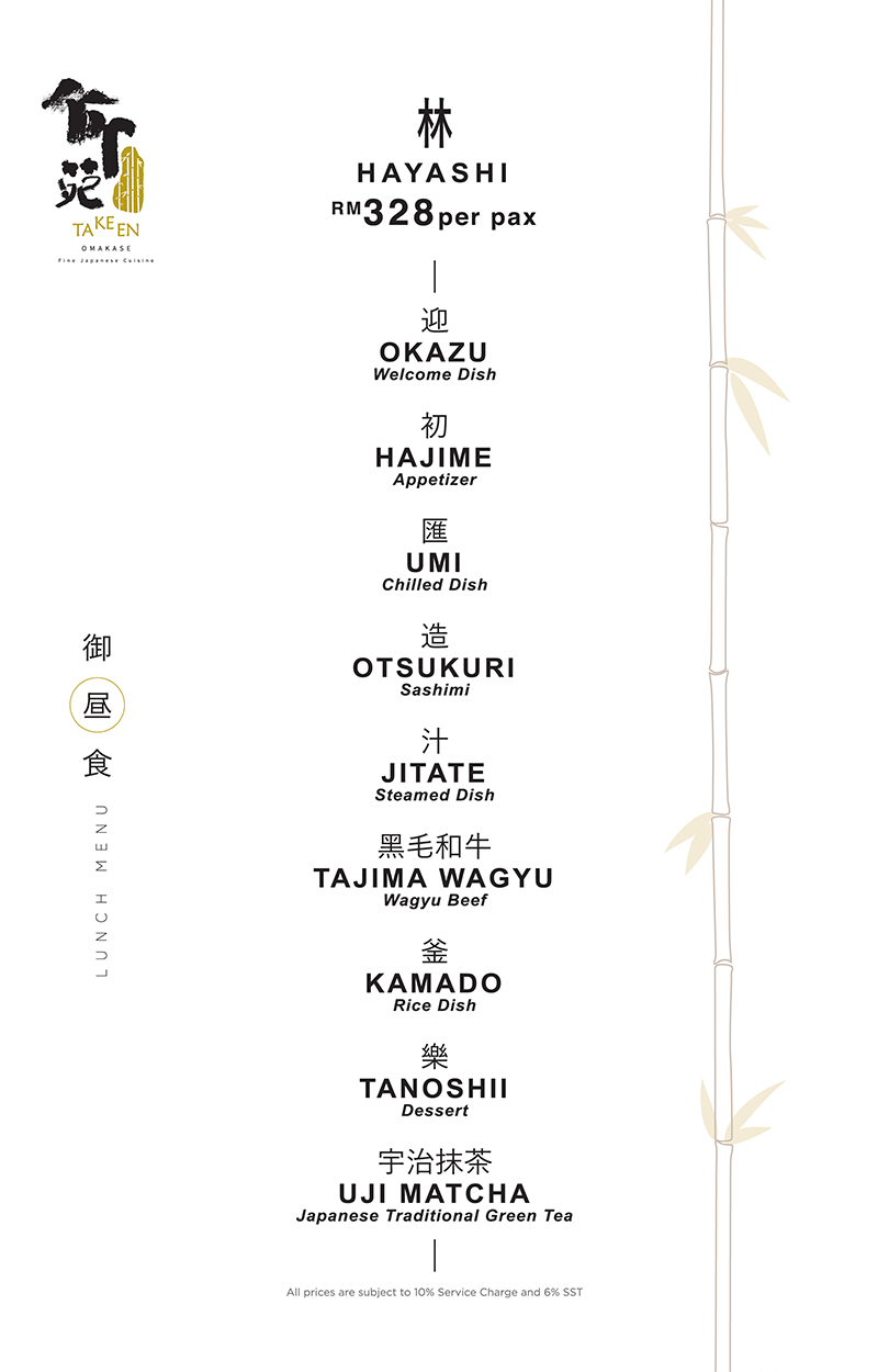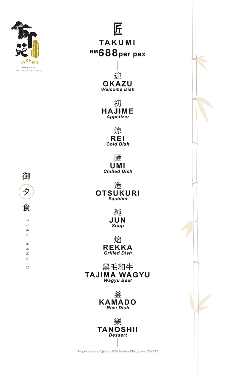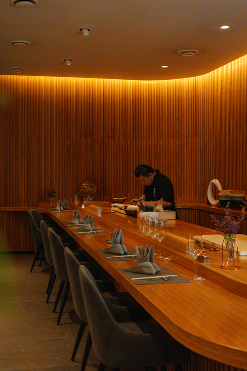 TaKeEn Omakase, located in Old Klang Road, KL is furnished with custom made boards made from Phyllostachys Eedulis bamboo and natural stone materials, creating earthy and minimalist tones in various textures. Whether you dine at the open bar table or elegant private room, rest assured of an experience crafted with elegance and exclusivity.