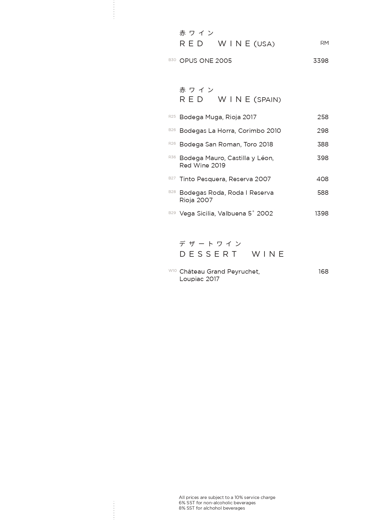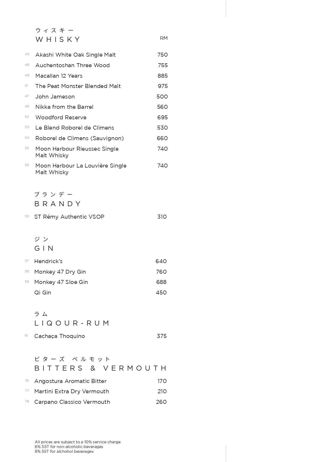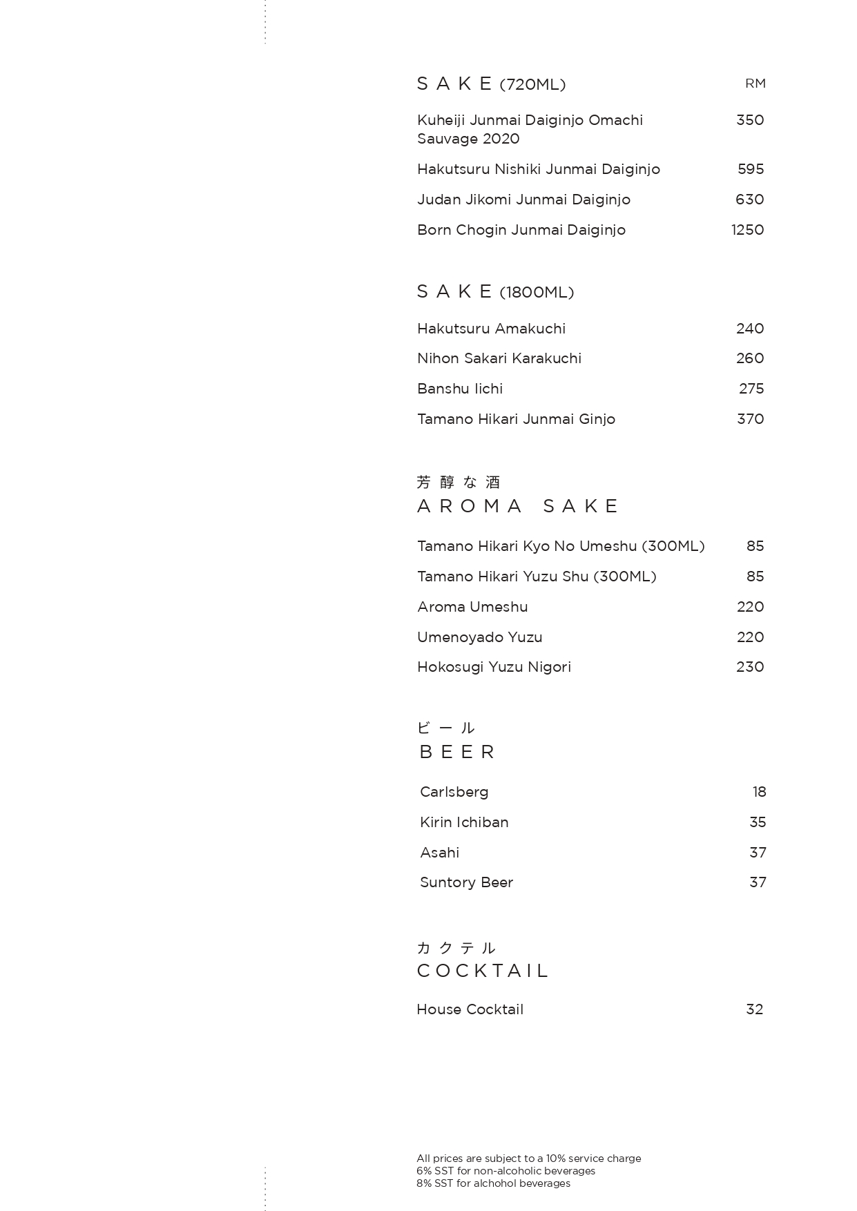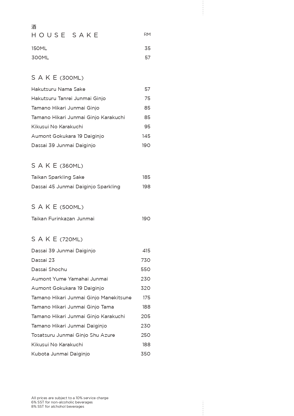 Corkage at TaKeEn is priced at RM60 per bottle.