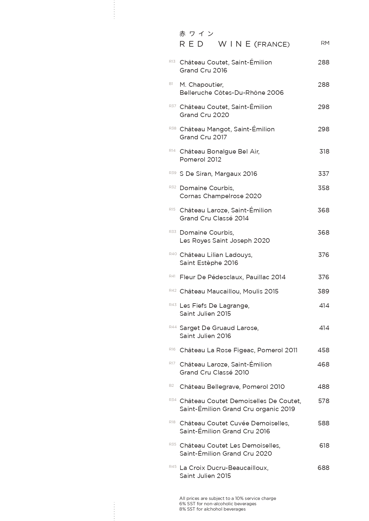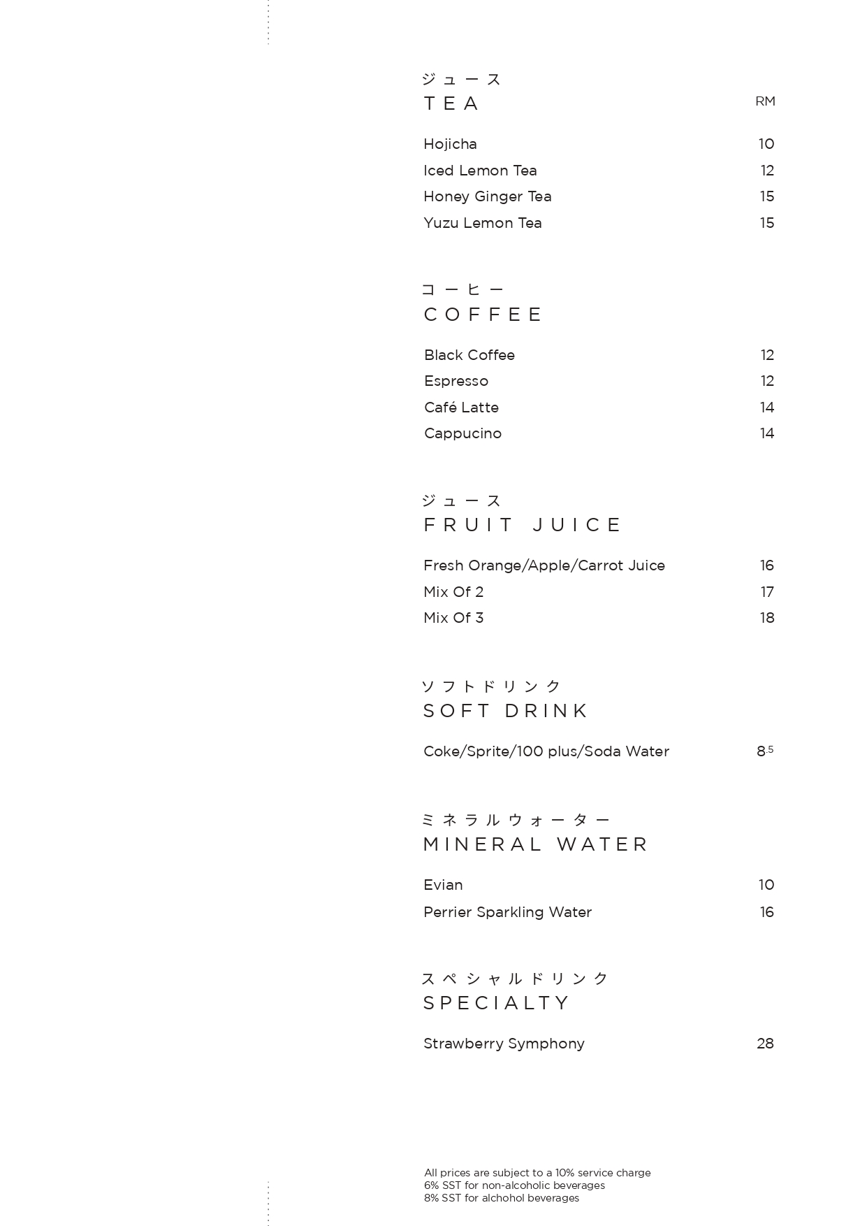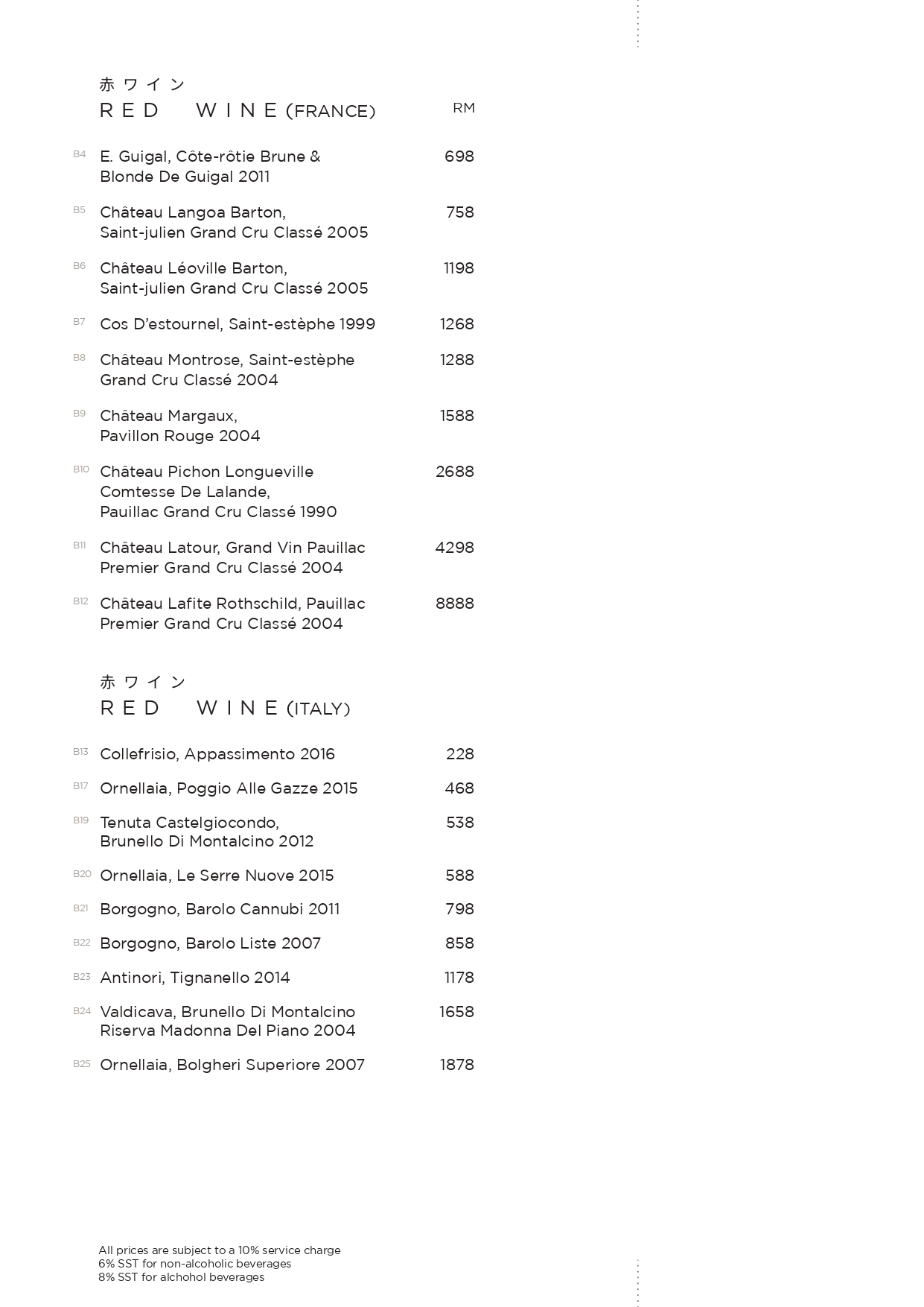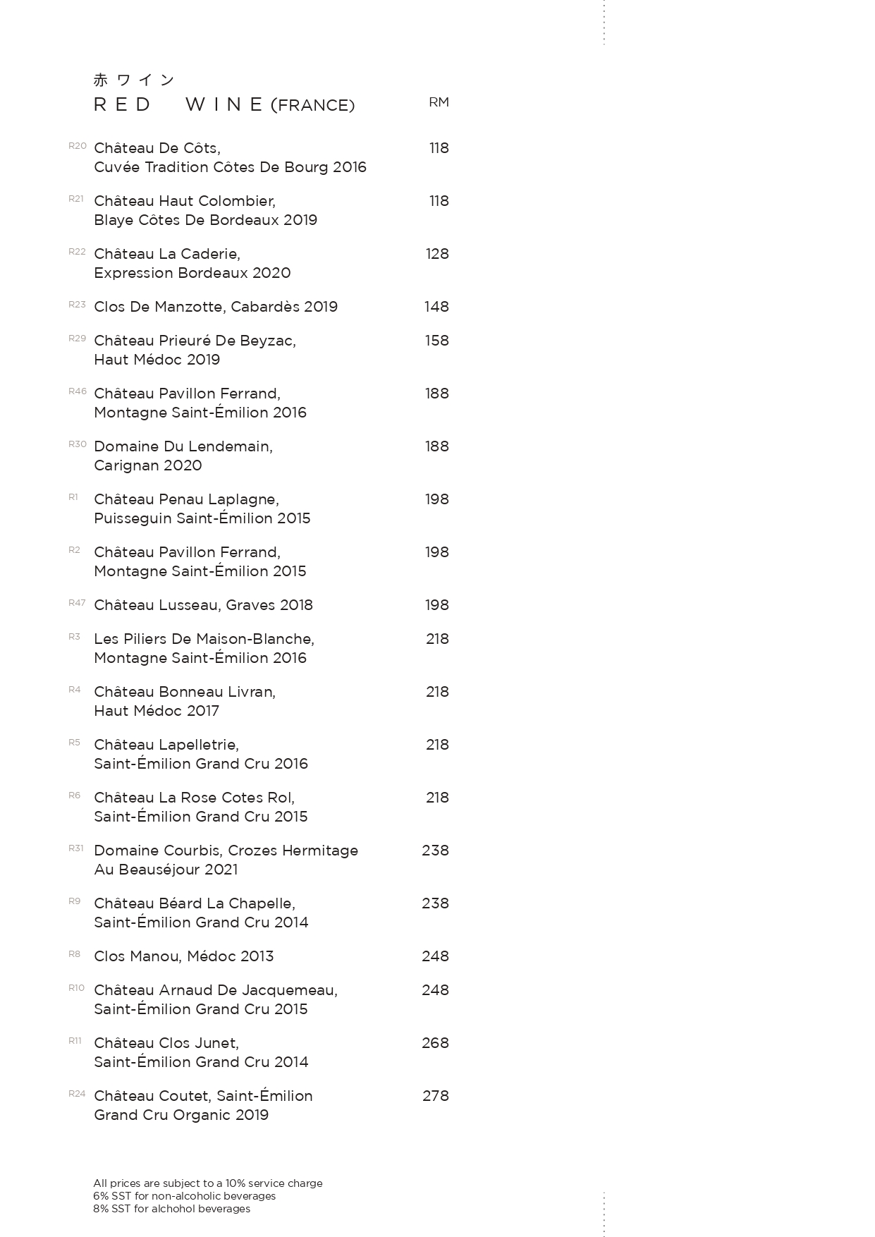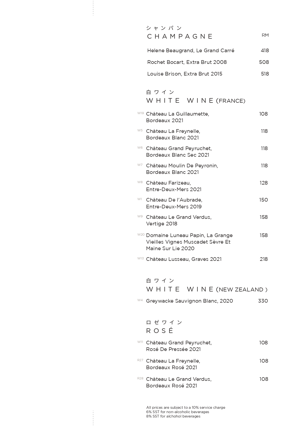 Corkage at TaKeEn is priced at RM60 per bottle.