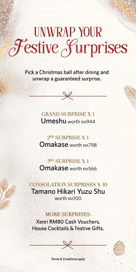Celebrate the joy of the season with a touch of wonder. After your meal, choose a Christmas ball from our Festive Surprise Tree and unveil a guaranteed gift.