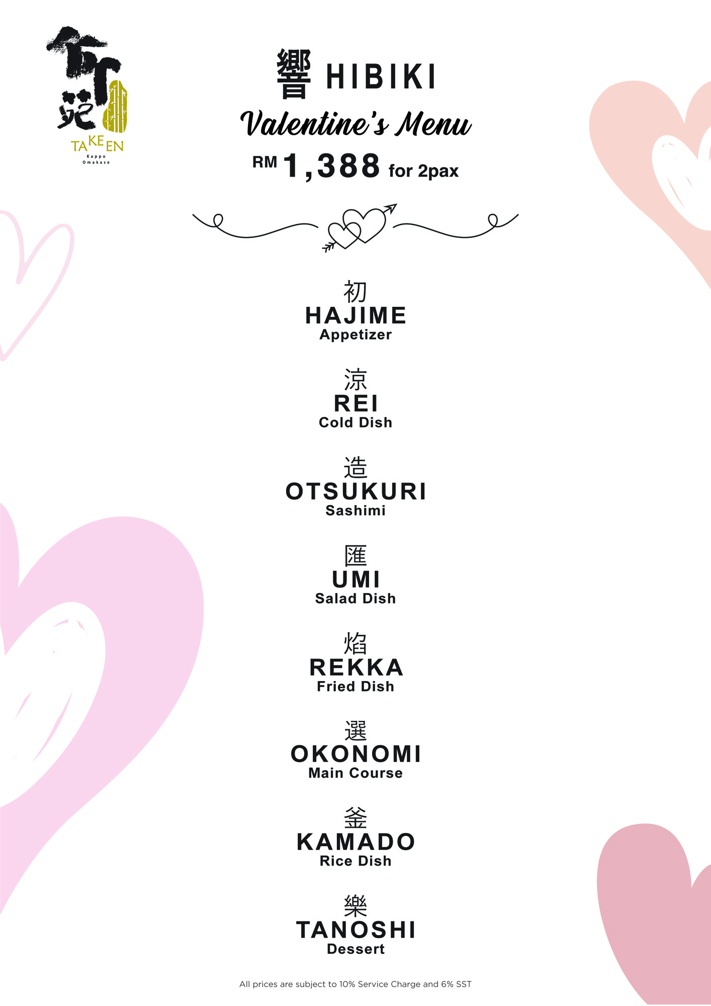 Corkage at TaKeEn is priced at RM60 per bottle.